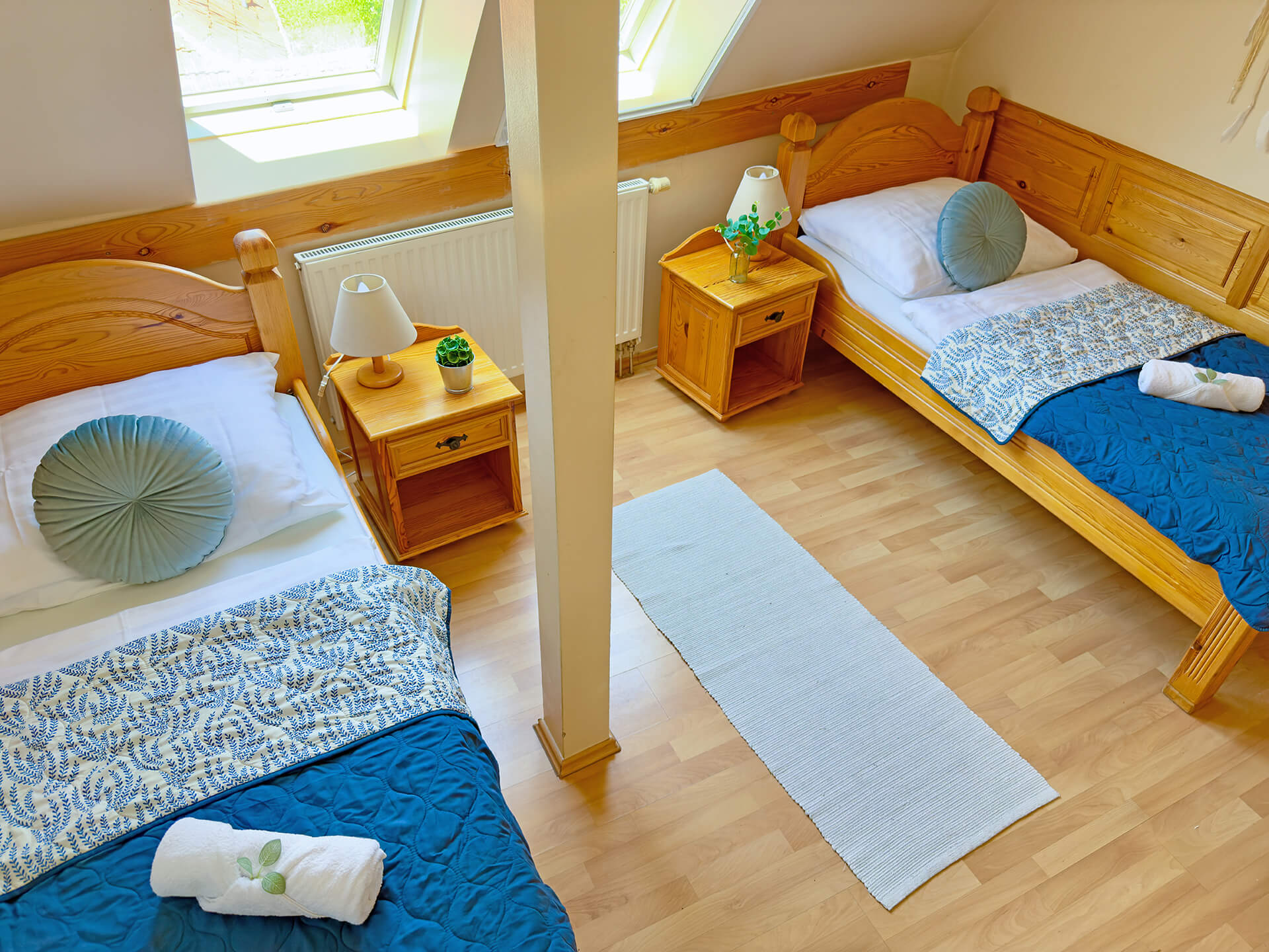 - Privát fürdőszoba: A családi szobához saját zuhanyzó és WC tartozik, mely kizárólag az Önök rendelkezésére áll.