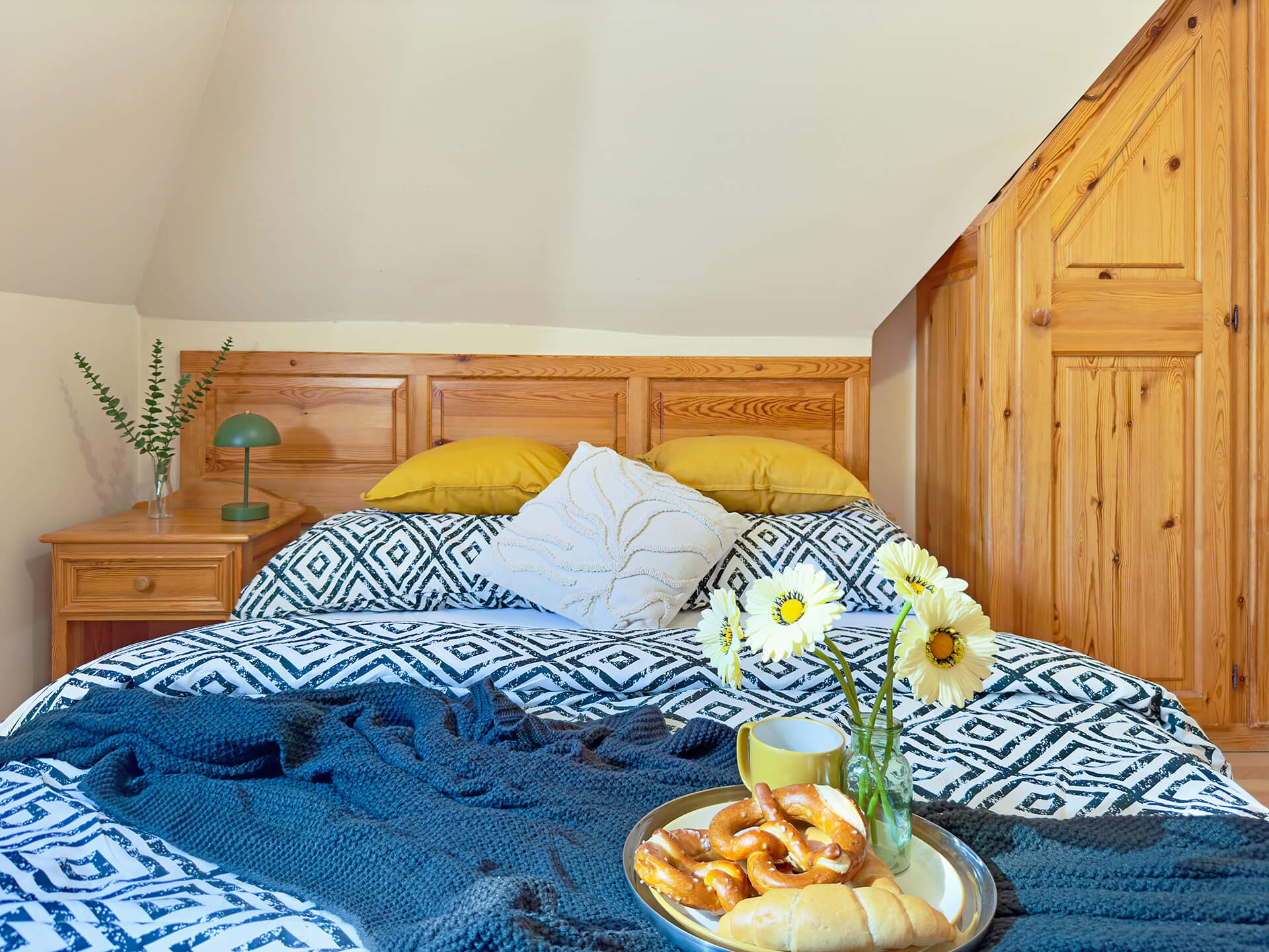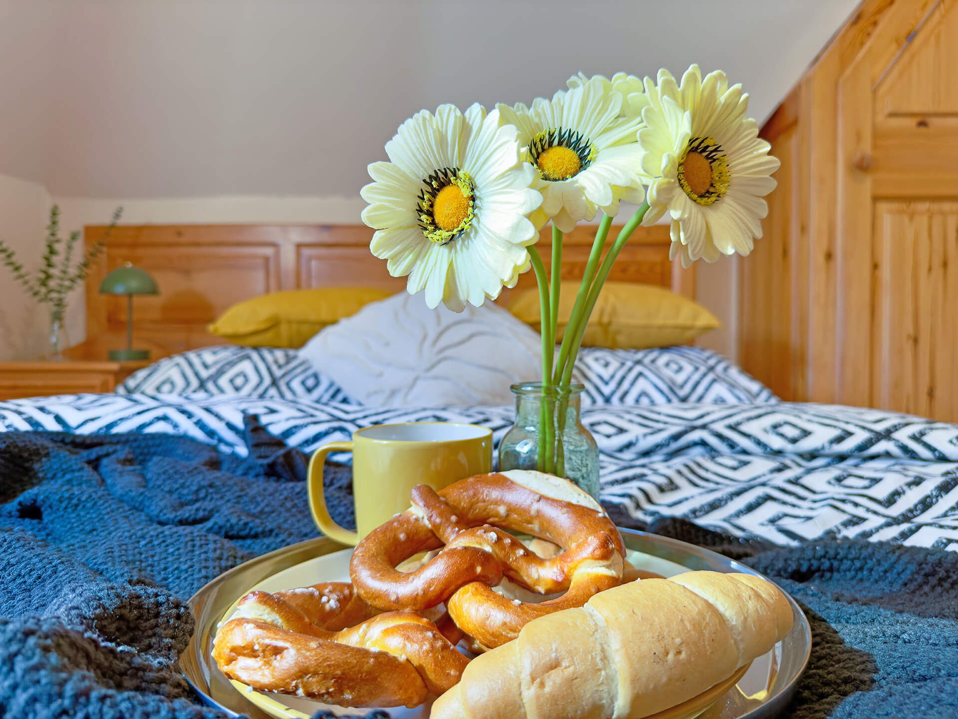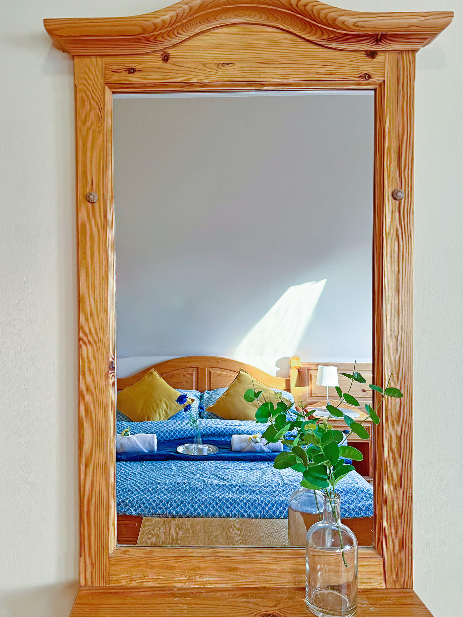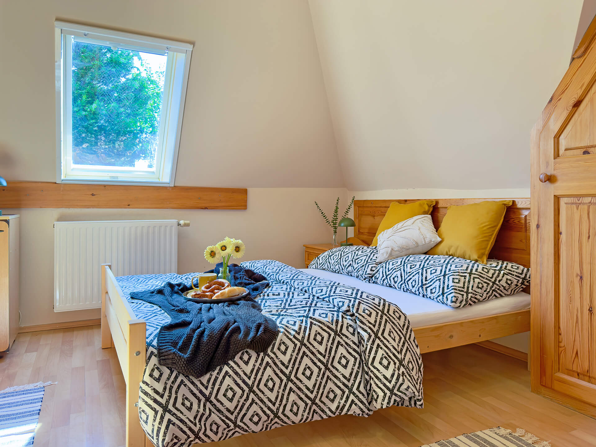- Franciaágyas elrendezés: A szoba egy kényelmes franciaággyal gondoskodik a pihentető alvásról.