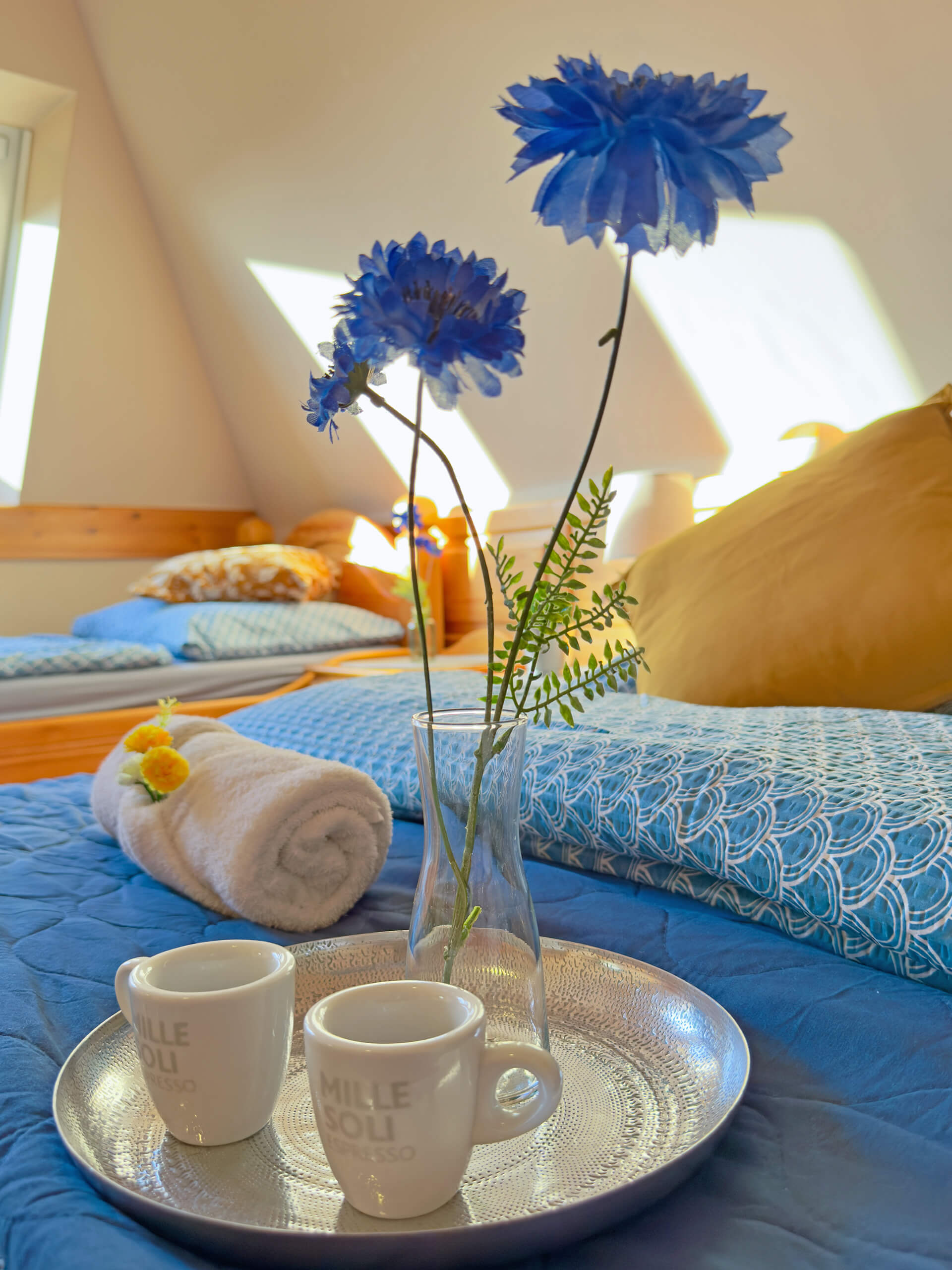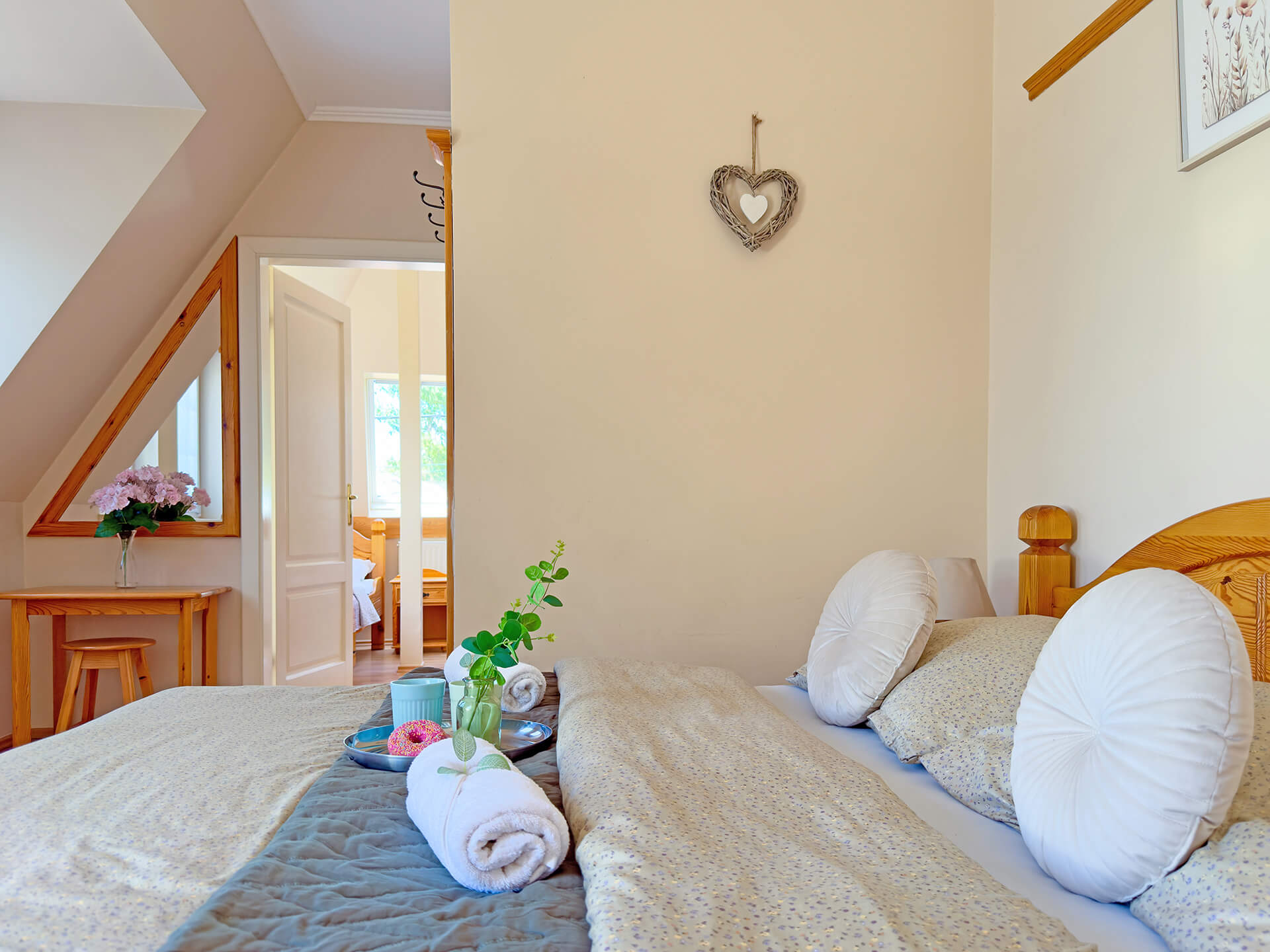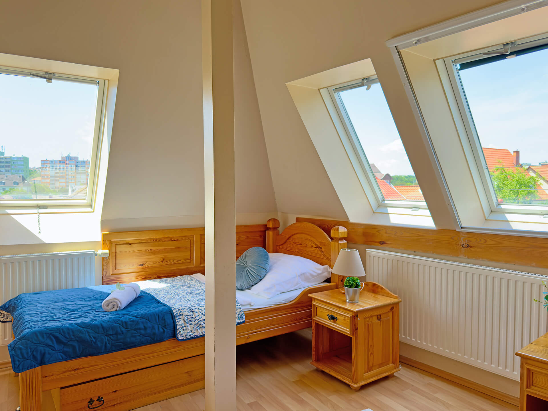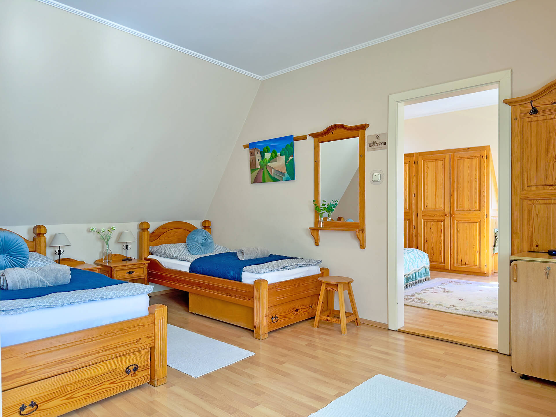 - Külön hálószoba: A belső szobában két különálló egyszemélyes ágy található beépített szekrénnyel, így biztosítva a zavartalan pihenést.