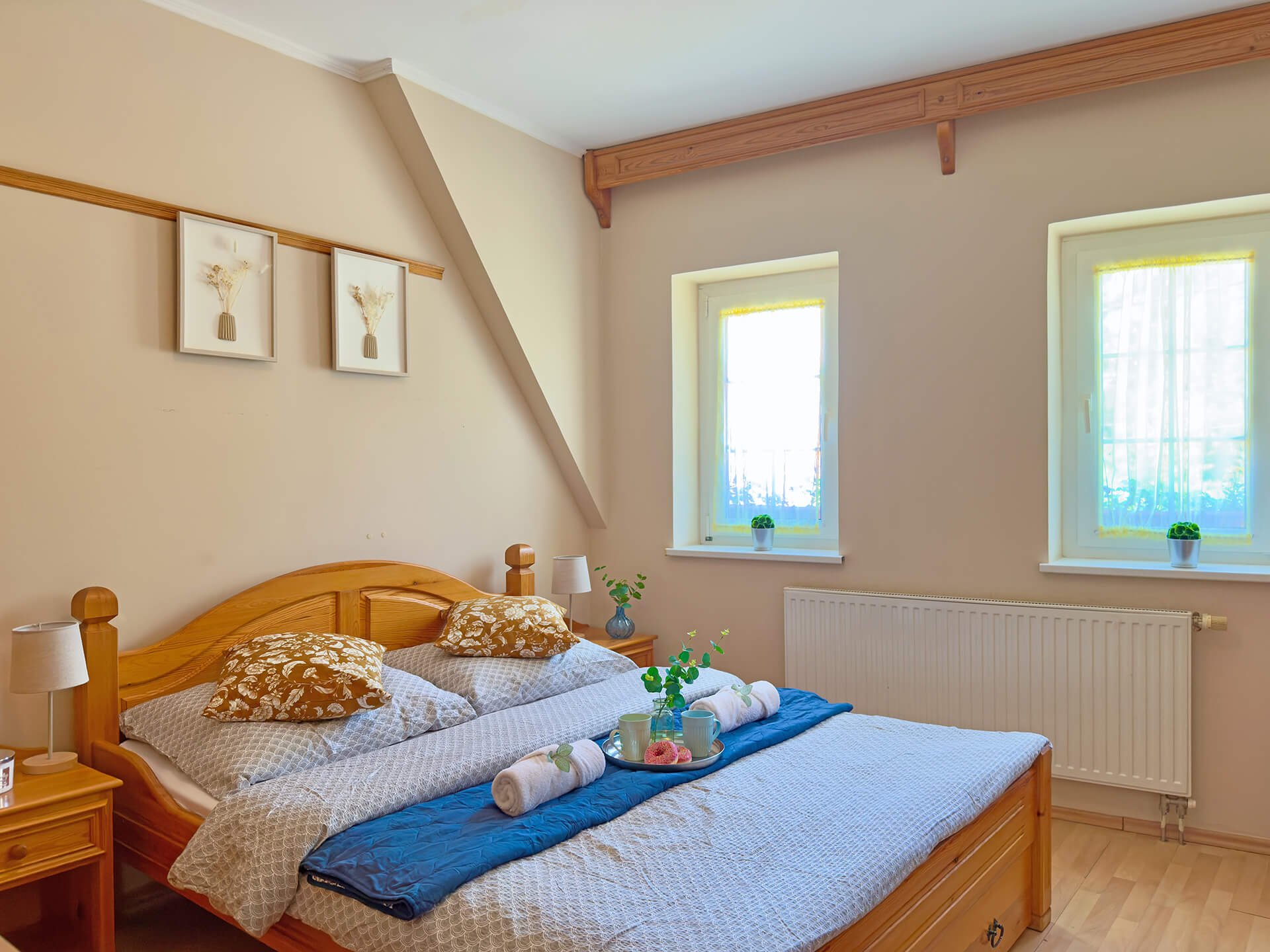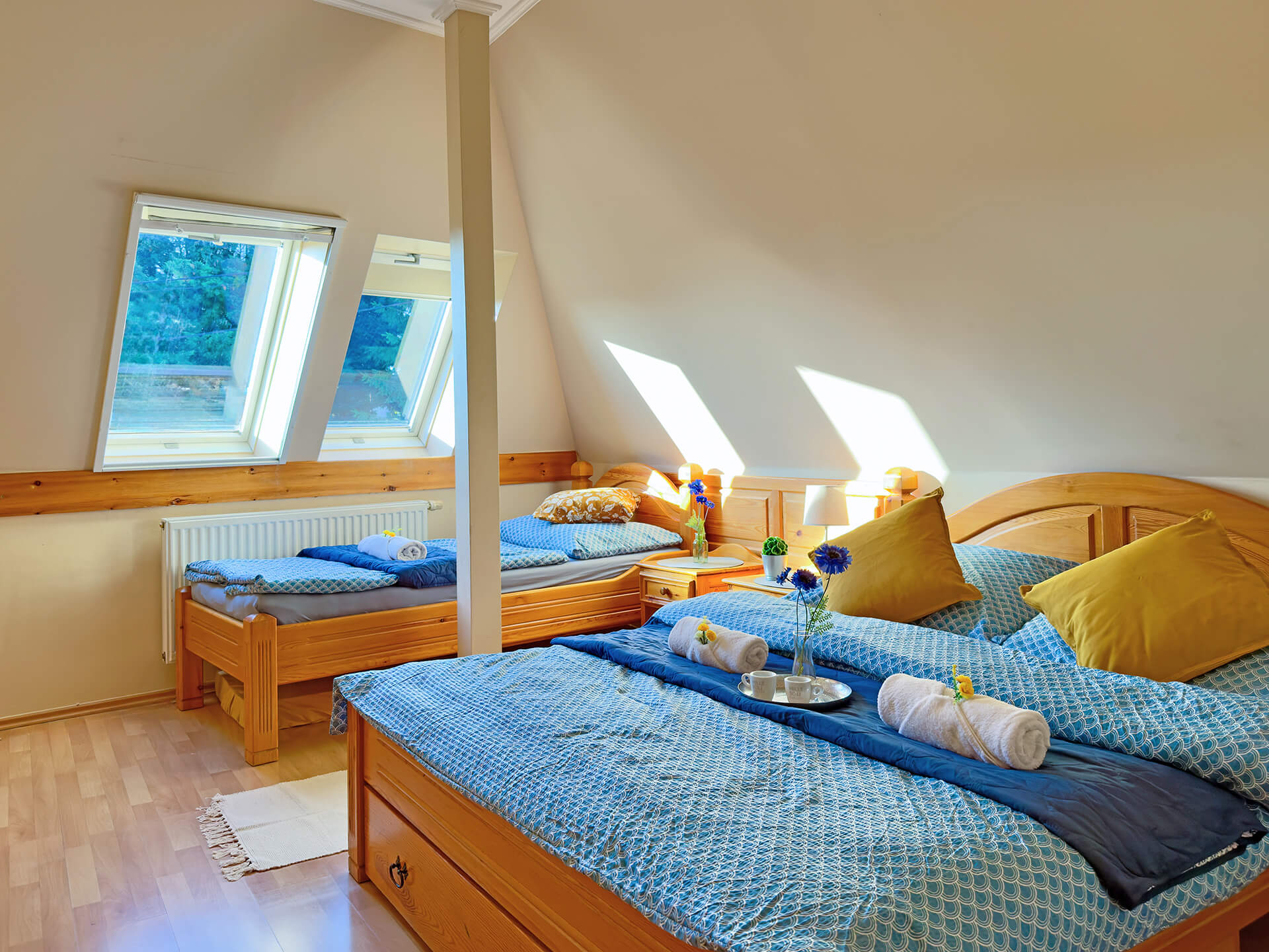 - Rugalmas Elrendezés: A szobában egy kényelmes franciaágy (két személy részére) és egy egyszemélyes ágy található, így mindenki kényelmesen elfér.